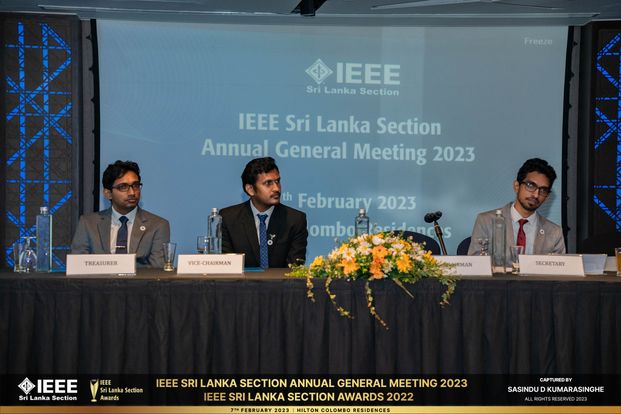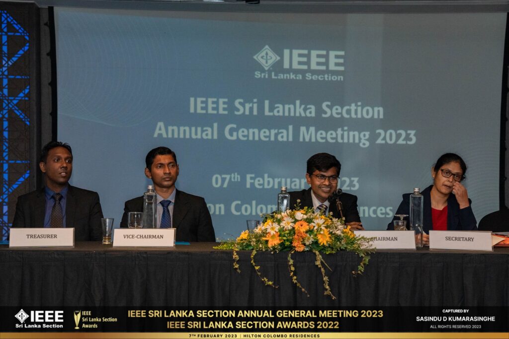 The AGM for 2023, along with the IEEE Sri Lanka Section Awards 2022, was held on February 7th, 2023, at the Hilton Colombo Residences. Professor Pradeep Abeygunawardhana, the Chair of the IEEE Sri Lanka Section, welcomed the gathering to the Annual General Meeting of IEEE Sri Lanka Section 2023. Professor Buddhika Jayasekara was appointed as the IEEE Sri Lanka Section Chair for the year 2023. Mr. Dhammika Marasinghe was elected as Chair Elect, and Mr. Chamika Sudusinghe was elected as Secretary of the IEEE Sri Lanka Section for the year 2023.
